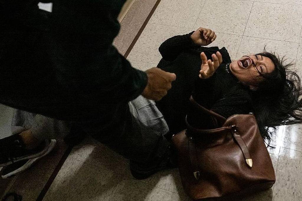 “Um deles me atacou de forma tão agressiva que fiquei apavorada. Ele acabou me jogando no chão”, relatou Mónica, que caiu na frente de jornalistas, fotógrafos e agentes da lei.