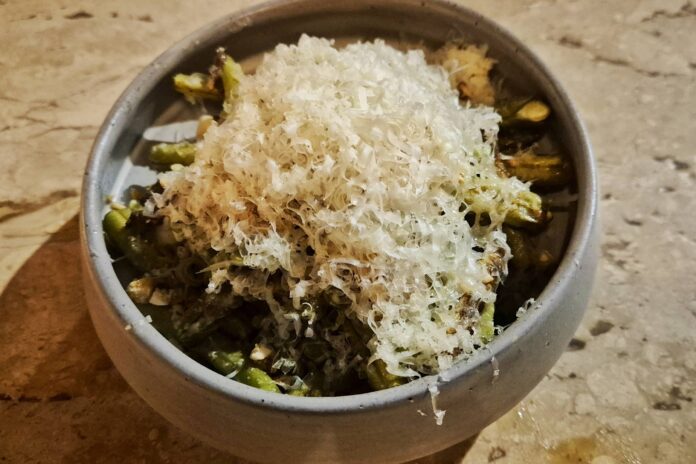 A porção de vagem na brasa (R$ 56) é a mais famosa da casa. Com castanha-de-caju, azeitona preta e ararita (um queijo maturado e de sabor delicado que lembra o pecorino romano), de fato é uma receita saborosa. Mas algumas vagens pareciam cruas. E o preço não pareceu condizente com o que o prato entregou.
