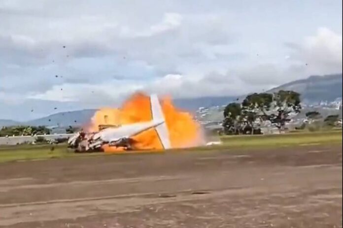 Duas pessoas morreram após a queda de um avião modelo Cheyenne no aeroporto de Paramillo, no Parque Nacional de San Cristóbal, na Venezuela. A aeronave explodiu logo após tocar a pista do aeroporto.