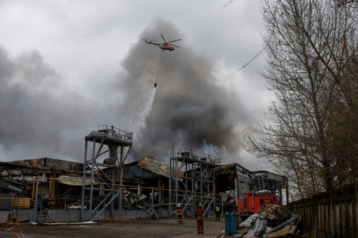 O ataque em Kiev provocou vários incêndios e danificou a infraestrutura residencial, incluindo um jardim de infância, segundo autoridades da cidade.