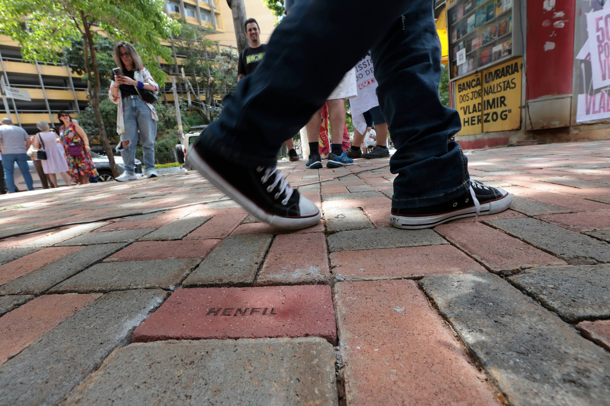 O Coletivo Cultural Associação de Amigos da Praça Memorial Vladimir Herzog inaugurou neste domingo (26) uma calçada com homenagens a vencedores do prêmio que leva o nome do jornalista, assassinado pela ditadura militar há 50 anos.