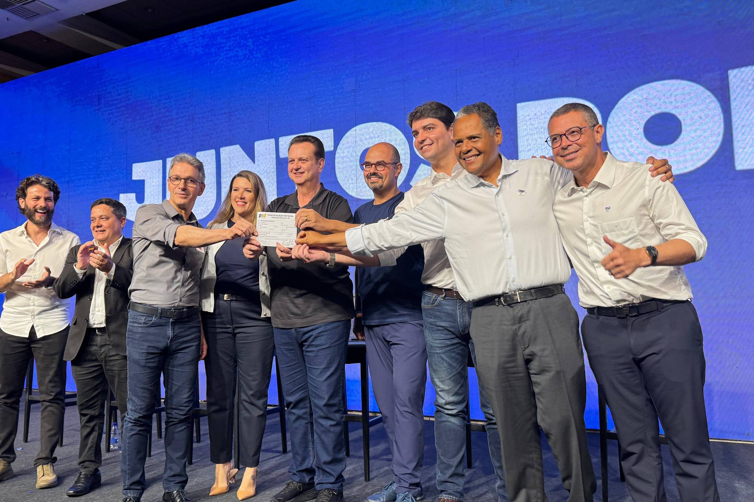 A fala foi feita nesta segunda-feira (27) em evento em Belo Horizonte de filiação de Simões ao novo partido. Também estavam presentes Zema e Kassab, além de dirigentes do Novo e do PSD.