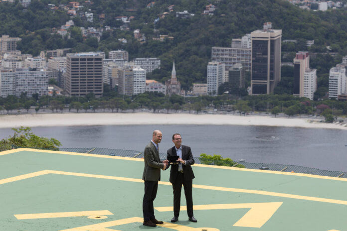 William foi recebido pelo prefeito do Rio, Eduardo Paes (PSD), e por um grupo de choro ao som de “Brasileirinho” no Morro da Urca, primeira parada do complexo turístico do Pão de Açúcar.
