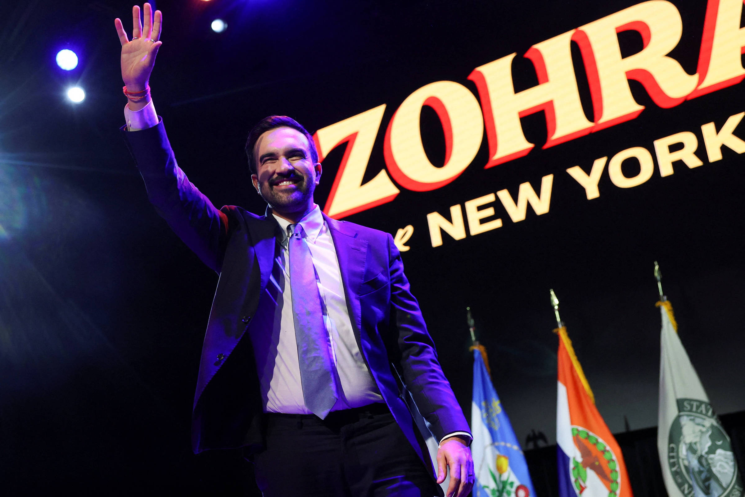 O prefeito eleito saudou seu eleitorado, agradeceu pela vitória e disse que “nesse momento de escuridão política, Nova York será um farol de luz”. Ele enalteceu seus suas raízes muçulmanas e, em meio aos gritos de apoiadores, afirmou que “a partir desta noite”, a cidade “é liderada por um imigrante”.