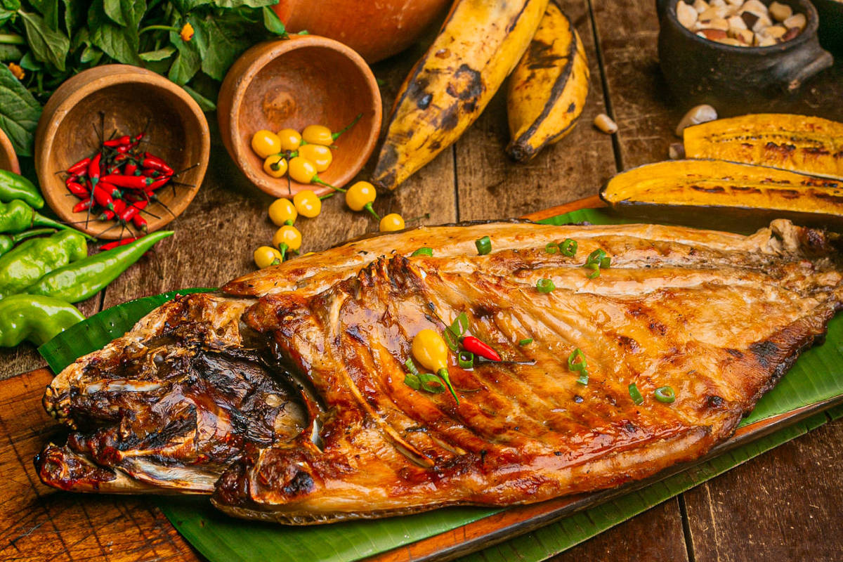 Entre receitas mais clássicas, preparadas com salmão e bacalhau, o chef Allan Renato serve pedidas como pirarucu com salada de manga e vinagrete de laranja e caldeirada paraense de filhote com frutos do mar.