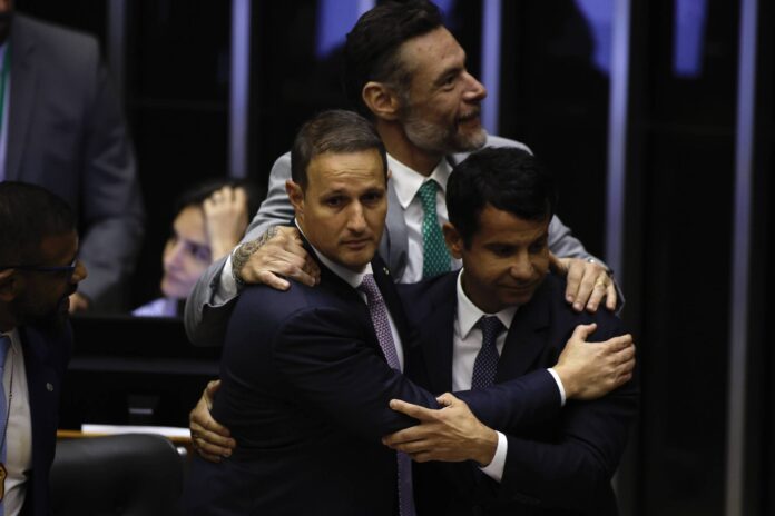 “Hoje é o dia da coragem. O pai dessa lei é cada um dos senhores e senhoras que tinham medo, mas que vão poder sair de casa mais tranquilos, seguros. Não contem com este governo federal, não contem com este presidente, não contem com estes partidos da esquerda porque a esquerda é negacionista na pauta da segurança pública”, discursou o deputado Zucco (PL-RS), líder da oposição na Câmara.