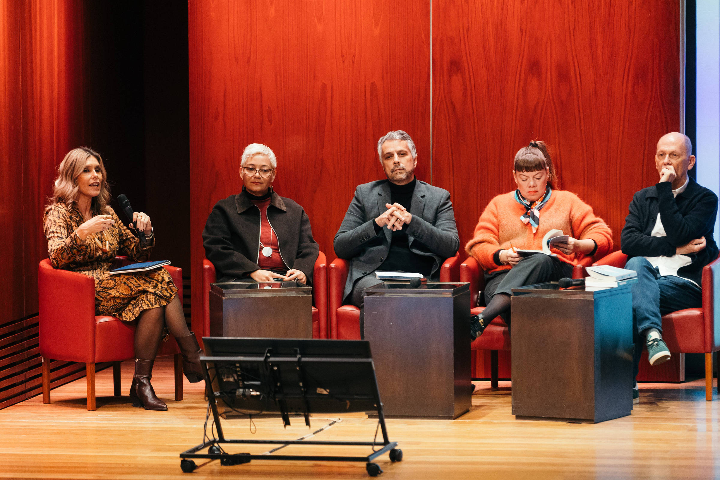 A mesa de lançamento reuniu os brasileiros Wisnik e Milena Britto, dois dos três curadores da exposição “Complexo Brasil”, em cartaz na própria Gulbenkian; os portugueses Capicua e Rodrigo Tavares, ela rapper e escritora, ele idealizador e um dos organizadores do livro (ao lado dos jornalistas da Folha Flavia Lima e Naief Haddad); e a jornalista Mafalda Anjos, mediadora da conversa.