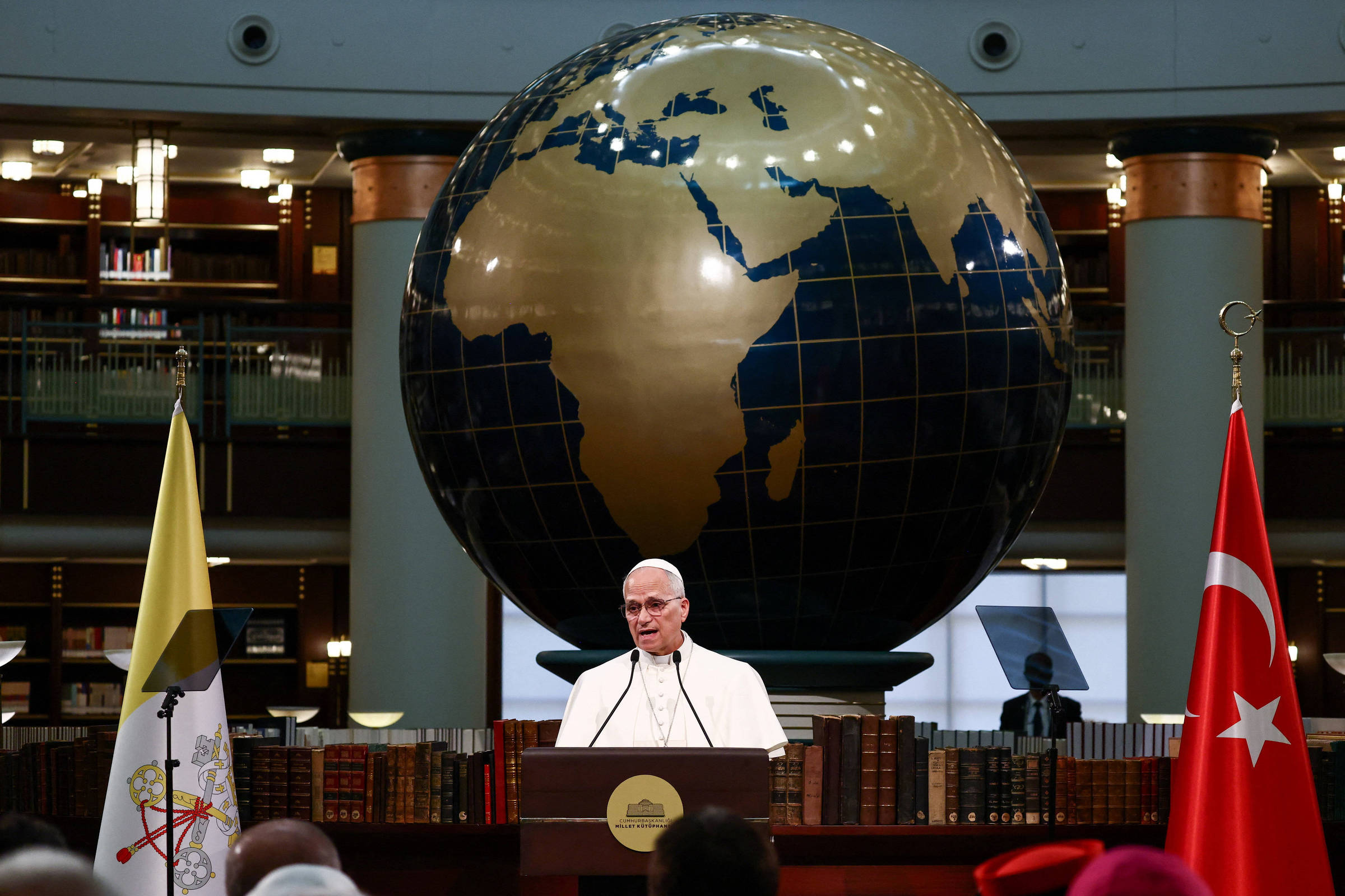 O pontífice também usou a metáfora histórica para a Turquia como ponte entre mundos para criticar a polarização e posições extremistas de um mundo com “risco de fragmentação”.