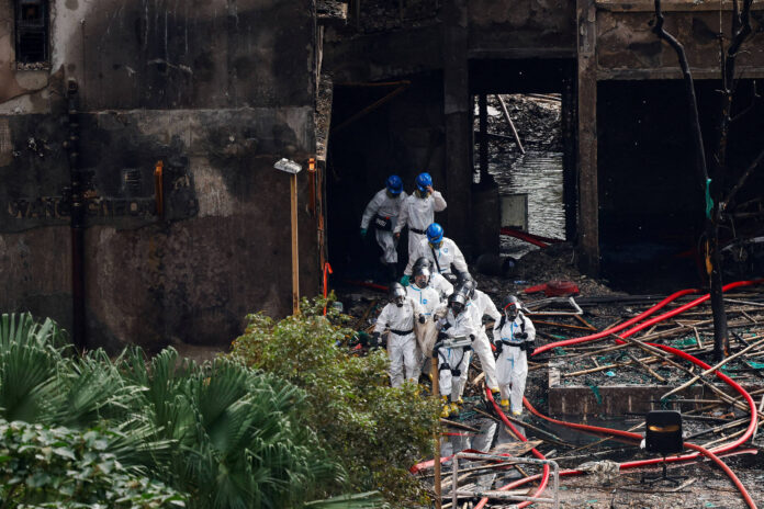 A polícia continua a vasculhar as sete torres engolidas pelas chamas na quarta-feira (26) no distrito de Tai Po, e encontrou corpos de residentes em escadas e telhados, presos enquanto tentavam fugir do fogo. Mais de 40 pessoas ainda estão desaparecidas.