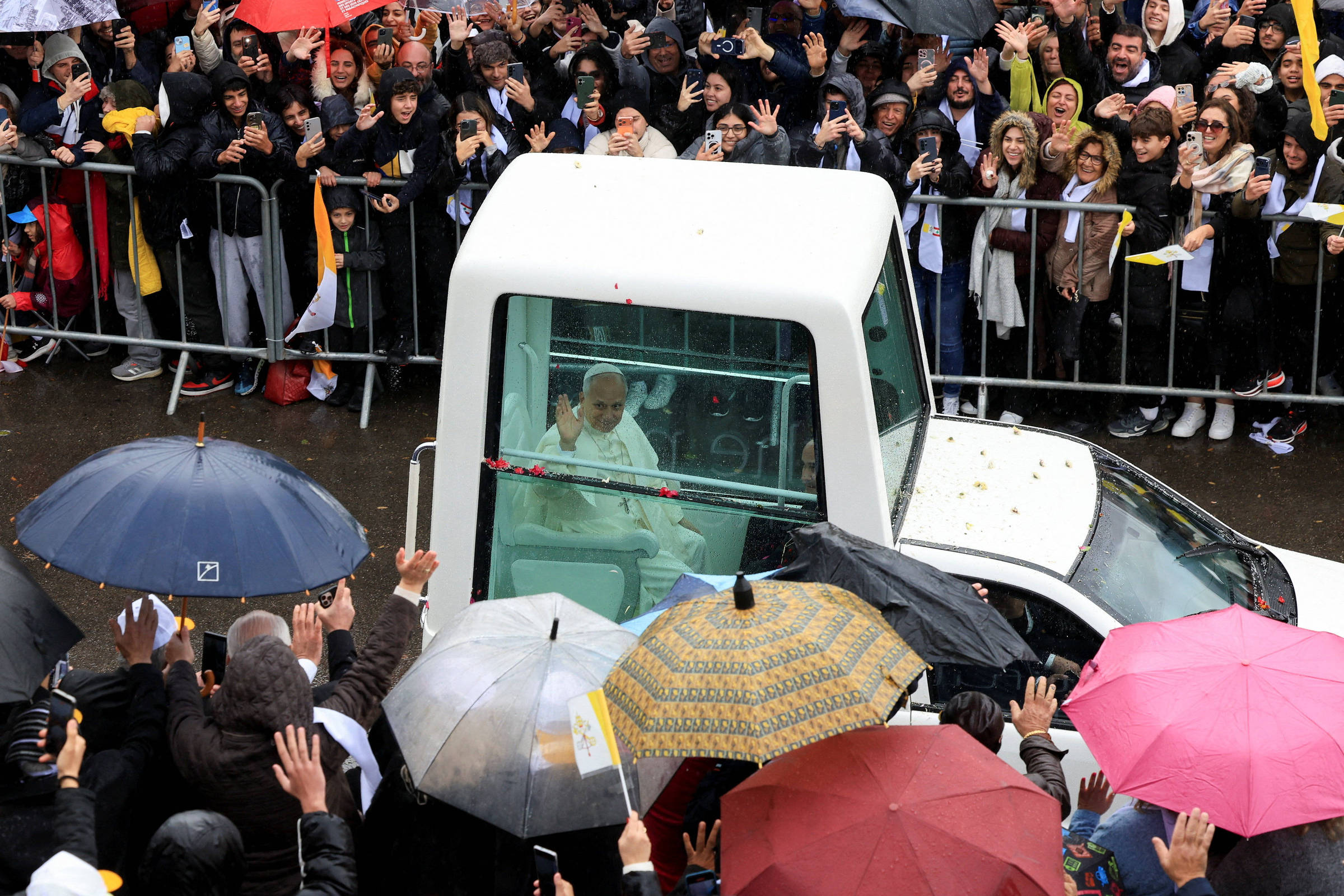 Milhares de pessoas desafiaram a chuva e alinharam-se nas ruas ao norte de Beirute desde cedo para dar ao papa uma calorosa recepção enquanto sua comitiva passava, com alguns acenando bandeiras libanesas ou do Vaticano.