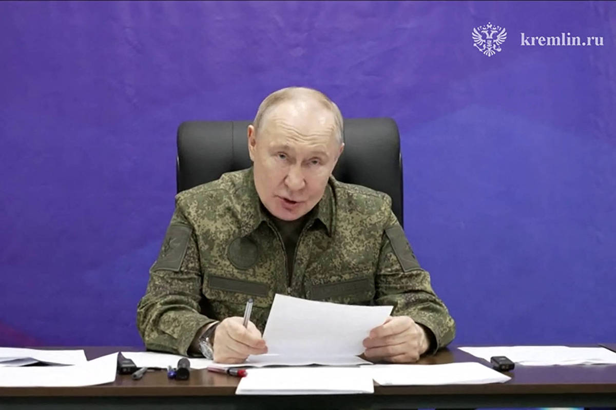 Putin coreografou o anúncio no melhor estilo marcial, vestindo uma farda camuflada para ser informado pelo chefe do Estado-Maior das Forças Armadas, Valeri Gerasimov, e generais que comandam tropas no país vizinho, que invadiu em 2022.