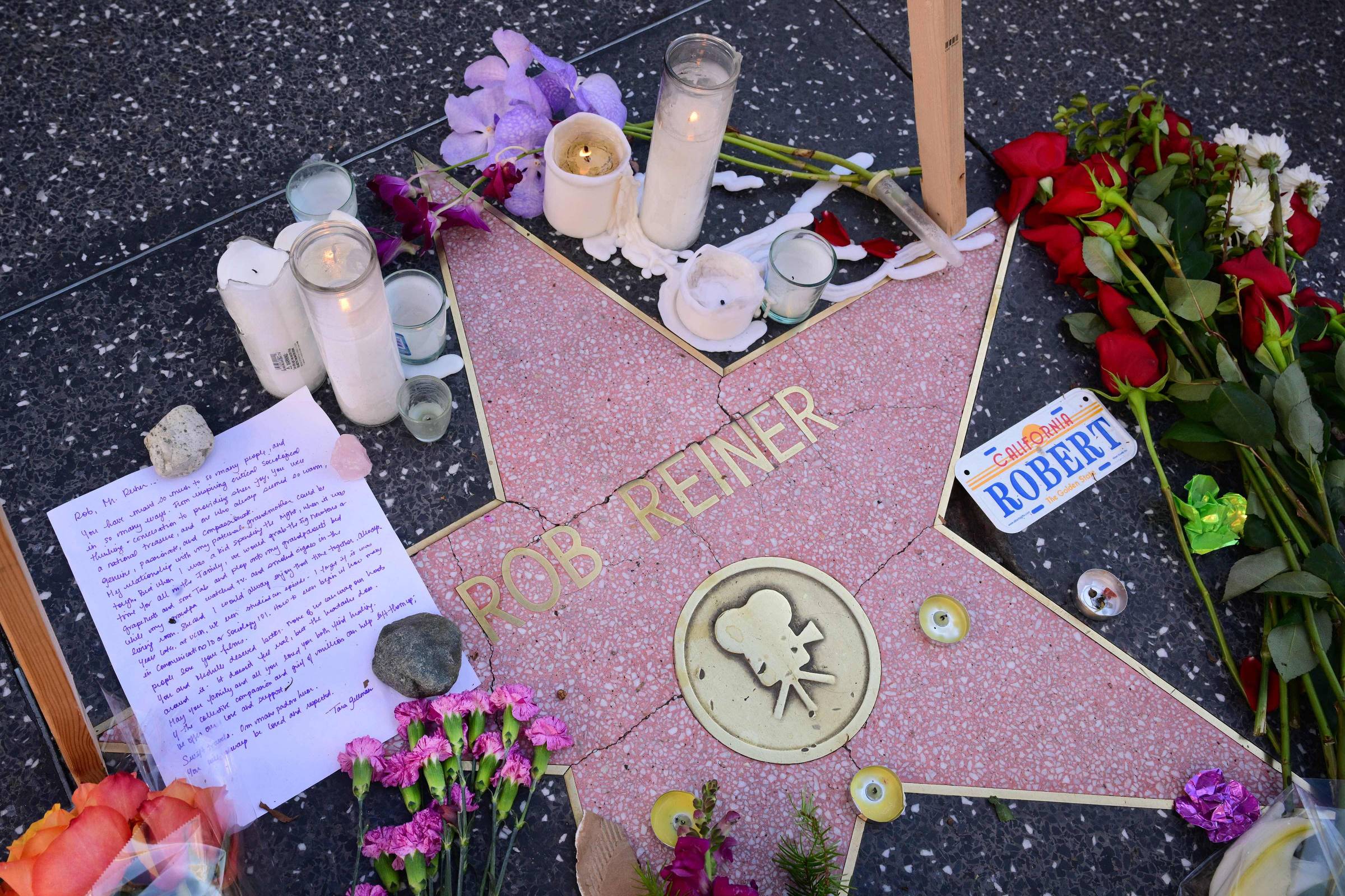 Rob Reiner, cineasta americano encontrado morto ao lado da mulher, a fotógrafa Michele Singer, no último domingo (14), recebeu uma série de homenagens na Calçada da Fama de Hollywood, em Los Angeles, nos Estados Unidos. Vários fãs colocaram flores na estrela do artista, posicionadas próximas ao seu nome.